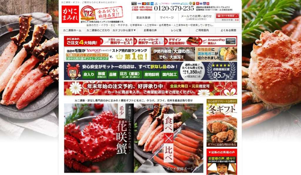 「かにまみれ」は、全商品が訳なしカニ専門の通販ショップです。