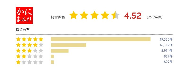 訳なしカニに徹底的にこだわったかにまみれのポリシーが顧客満足度95.7%という数字の裏付けとなっています。