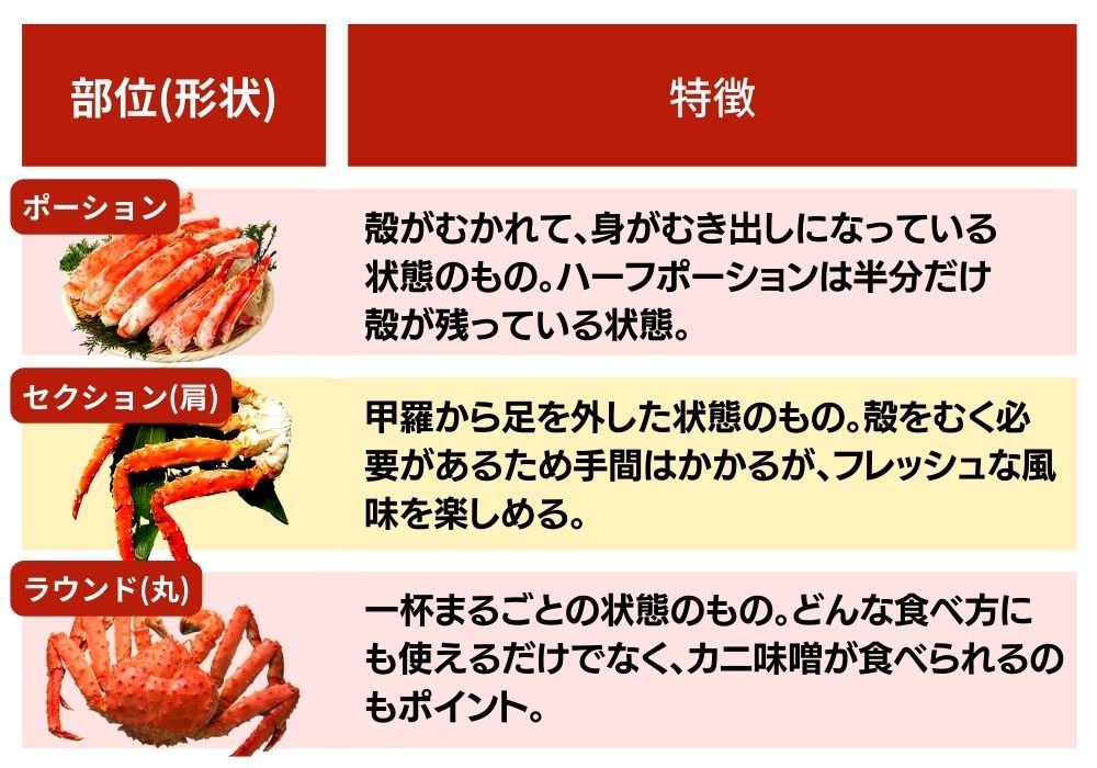 もっとも手軽なのが、カニの殻がむかれていて、身がむき出しになっているポーションです。